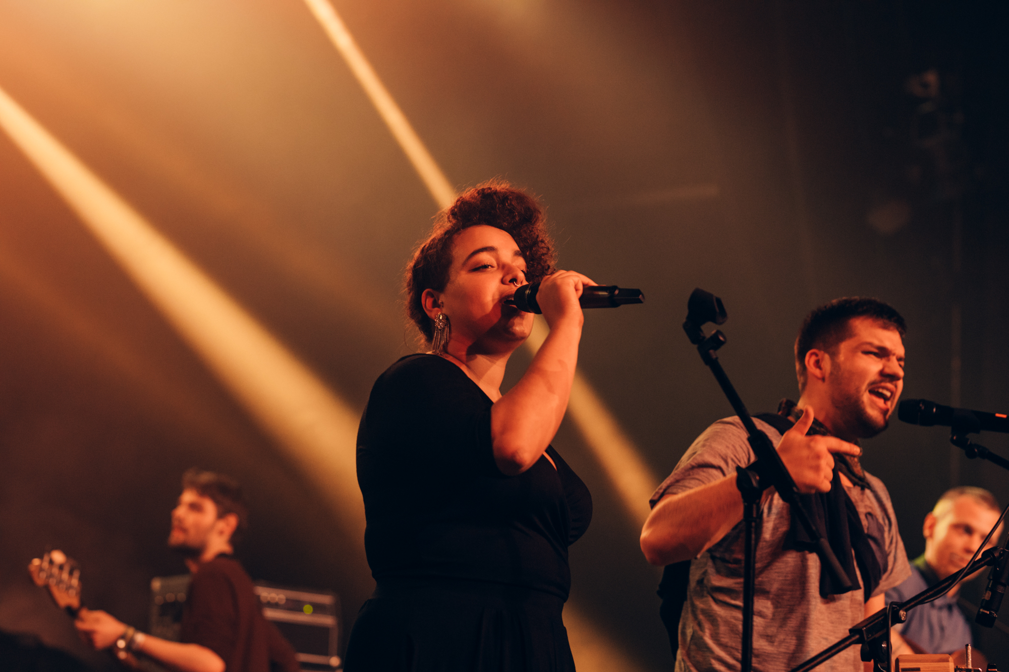 Denn die Band zeigte ein vielseitiges, komplexes Programm, bei dem sowohl die eklektische Performance von Frontmann Max am Mikrofon und an den Percussions als auch die Stärken von Sängerin Sarah und den Instrumentalisten zur Geltung kamen. Das Publikum dankte es den sieben Musiker*innen durch ausufernde Tanzeinlagen und wilden Applaus.